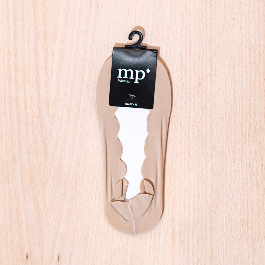 Chaussettes courtes « invisibles » de MPwoman, avec bord festonné et semelle en coton. Les chaussettes sont conçues pour être cachées, de sorte qu'elles ne soient pas visibles lorsque vous portez des chaussures. Elles sont donc très courtes et comportent un détail en caoutchouc à l'intérieur du talon pour maintenir les chaussettes en place et éviter qu'elles ne glissent.