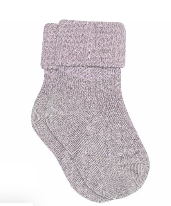 Chaussettes bébé côtelées classiques à paillettes en viscose de bambou de mpKids. Tricotées avec un fil doux et pailleté, elles leur confèrent un aspect scintillant. Pour un ajustement optimal, elles sont dotées d'un talon anatomique à 90°. La viscose de bambou est une fibre textile extraite des plantes de bambou et transformée en une fibre de viscose confortable, très fine et douce contre la peau.