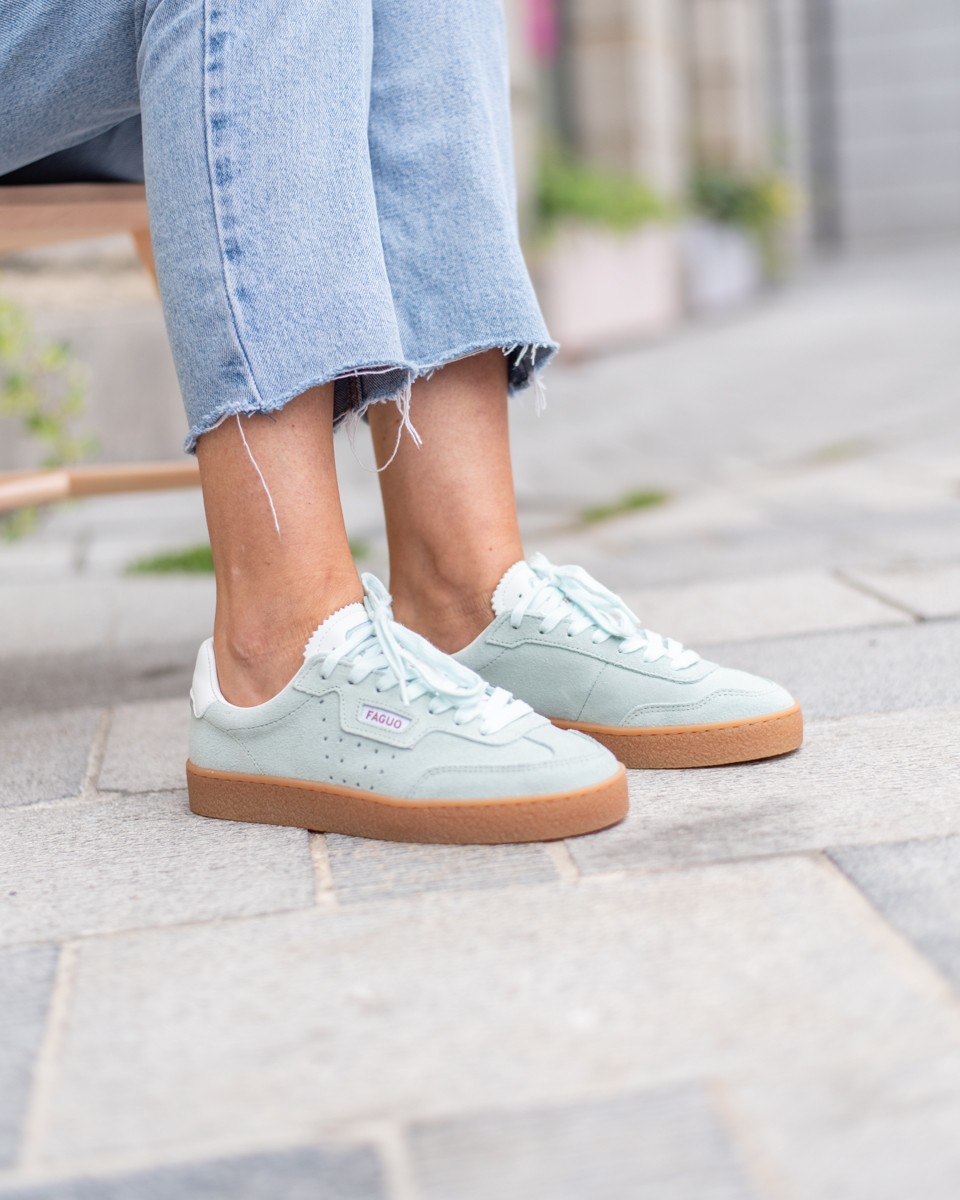 Avec son design inspiré des chaussures de football vintage, la LUMBO bleu denim revisite l’esthétique sportive dans une version moderne et raffinée. Confectionnée au Portugal avec un savoir-faire exigeant, elle allie élégance et confort pour s’adapter parfaitement au quotidien. Sa tige en cuir et cuir suède joue sur les textures pour un rendu à la fois authentique et sophistiqué, tandis que les empiècements en PU renforcent sa structure. À l’intérieur, la doublure en mesh assure une bonne respirabilité, et la première de propreté en liège garantit un confort optimal à chaque pas. Conçue avec des matériaux responsables, cette sneaker se distingue également par ses lacets en coton et son packaging recyclé et recyclable.