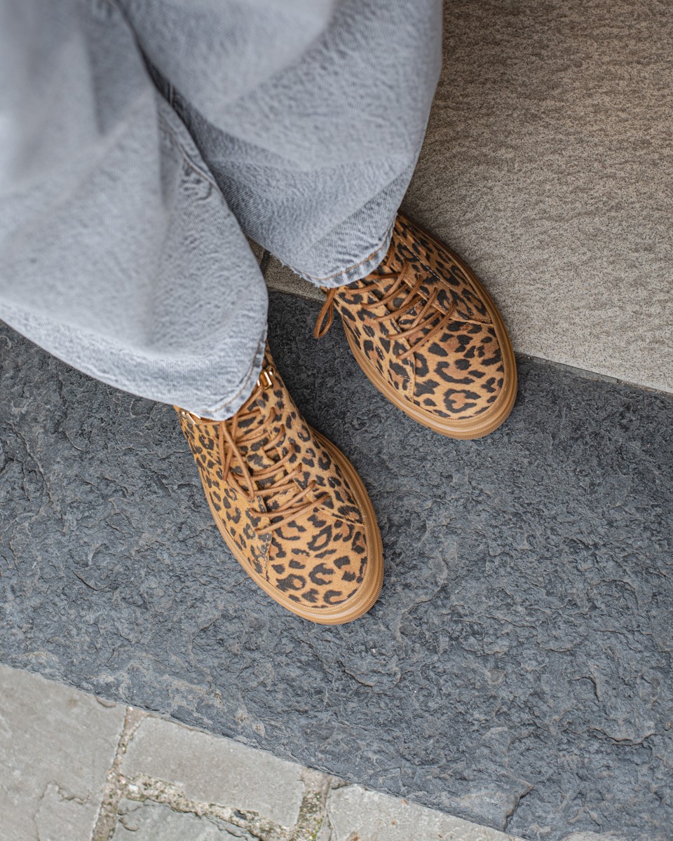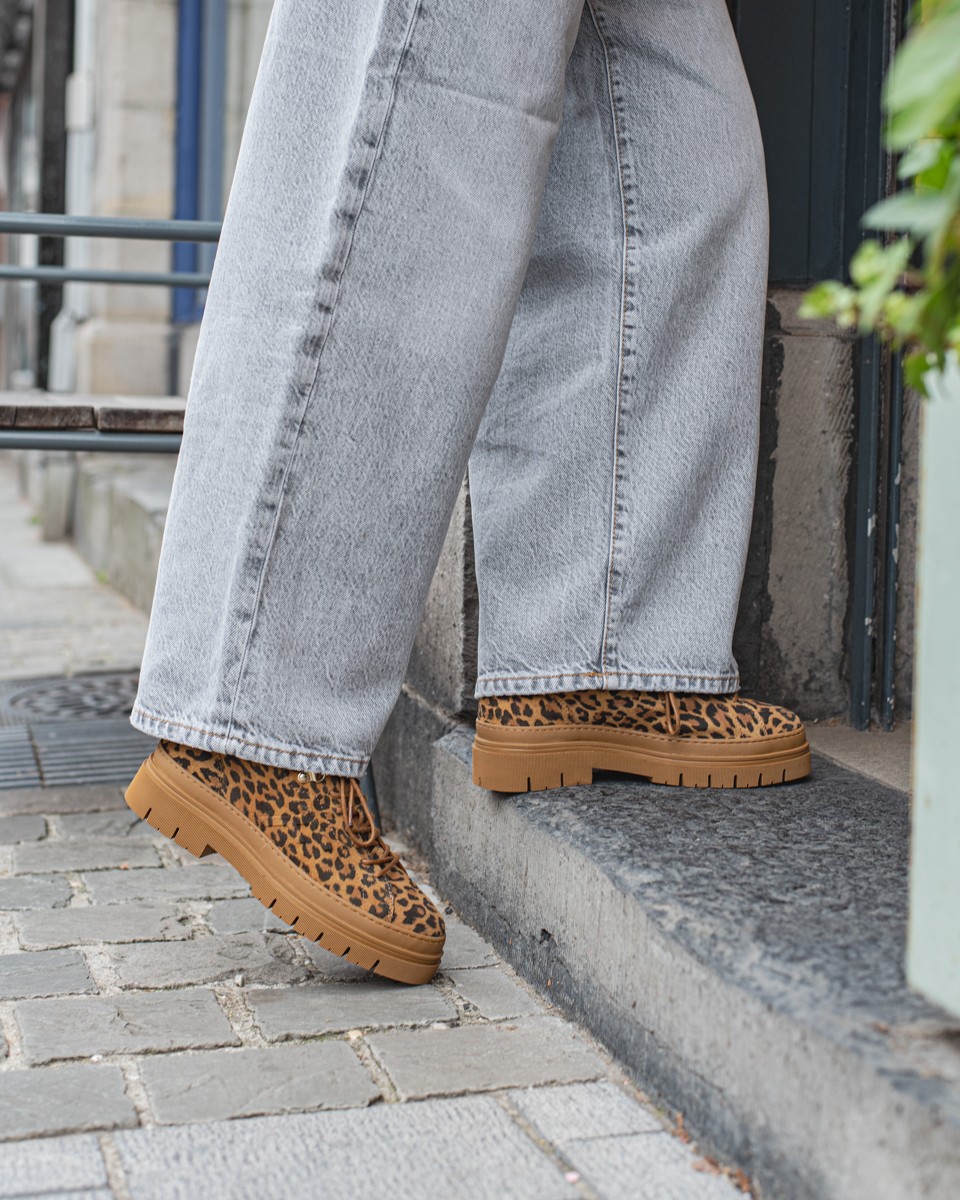 Un rendez-vous en ville, un détour par ton café préféré. Tes chaussures MARBLEWOOD en marron et léopard t’accompagnent naturellement. Inspirées des modèles d’approche, elles adoptent une semelle chunky qui rend chaque pas fluide. Leur tige en cuir suède souple assure à la fois confort et respirabilité, idéale pour marcher longtemps. Les lignes nettes et les matières durables témoignent d’un travail pensé pour durer. Les lacets colorés apportent une note contemporaine, sans en faire trop. Sur le côté, le logo “F” rappelle discrètement l’ADN FAGUO. Confortables en ville, elles s’adaptent aussi aux échappées du week-end. Leur souplesse et leur maintien en font des alliées du quotidien. Elles se portent facilement avec un jean droit, une robe fluide ou un sweat DIRAC pour un look décontracté. Dans le respect de notre démarche écoresponsable, ces chaussures pour femme sont expédiées dans un emballage recyclé et recyclable.