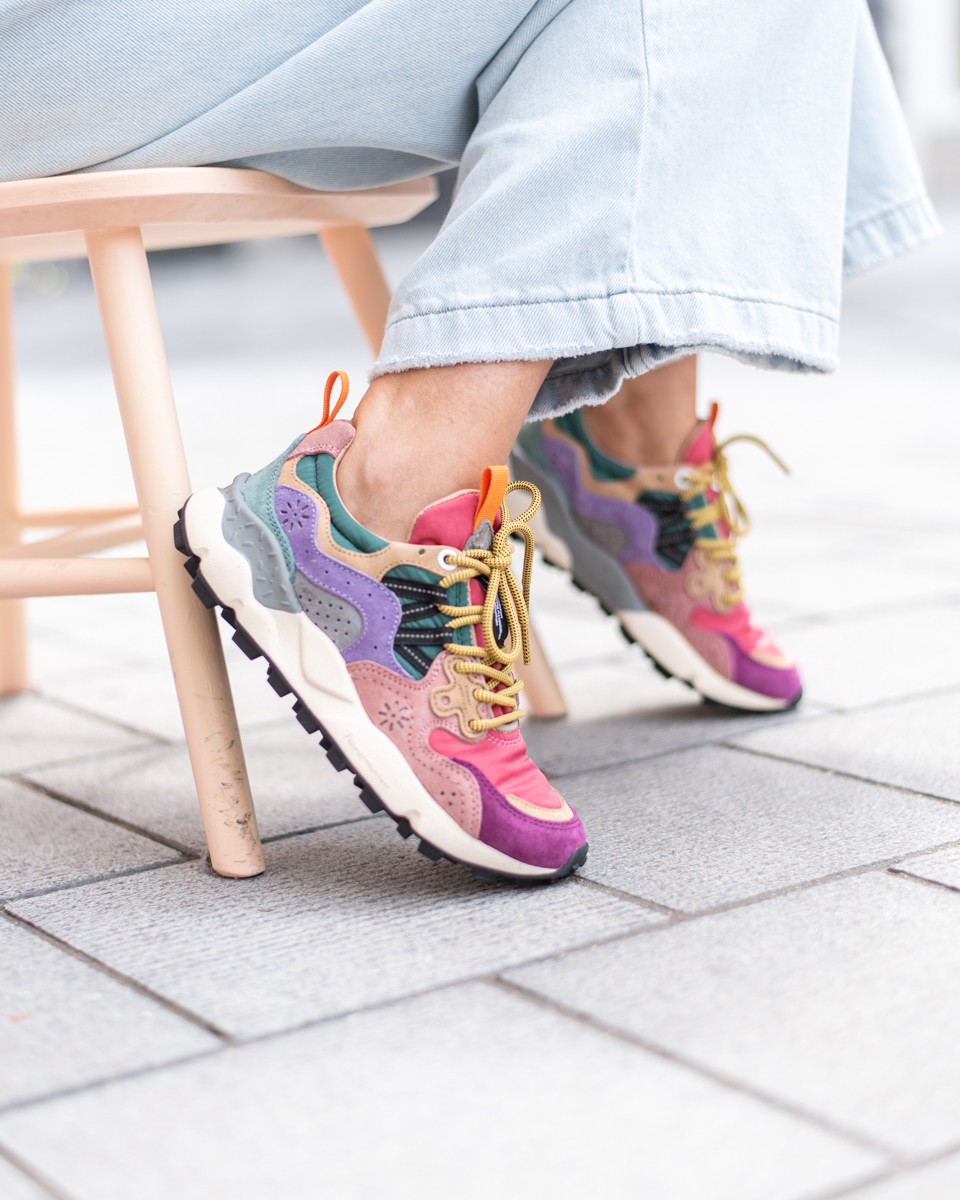 Inspirées du monde du sport et du plein air, les baskets Yamano mélangent des détails actifs avec une esthétique cool, parfaites même en ville. La tige en tissu technique présente des détails en daim avec la construction superposée caractéristique, des lacets de randonnée et un œillet en forme de fleur. La semelle est en caoutchouc ultra léger, avec un spoiler coloré sous le talon et une bande de roulement dentelée. La semelle intérieure en liège naturel antibactérien assure le bien-être du pied et un confort toute la journée.