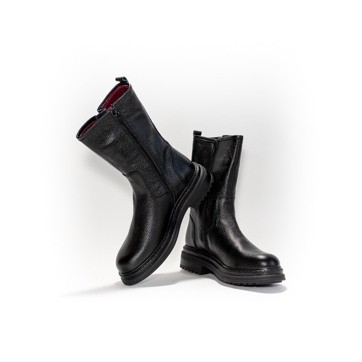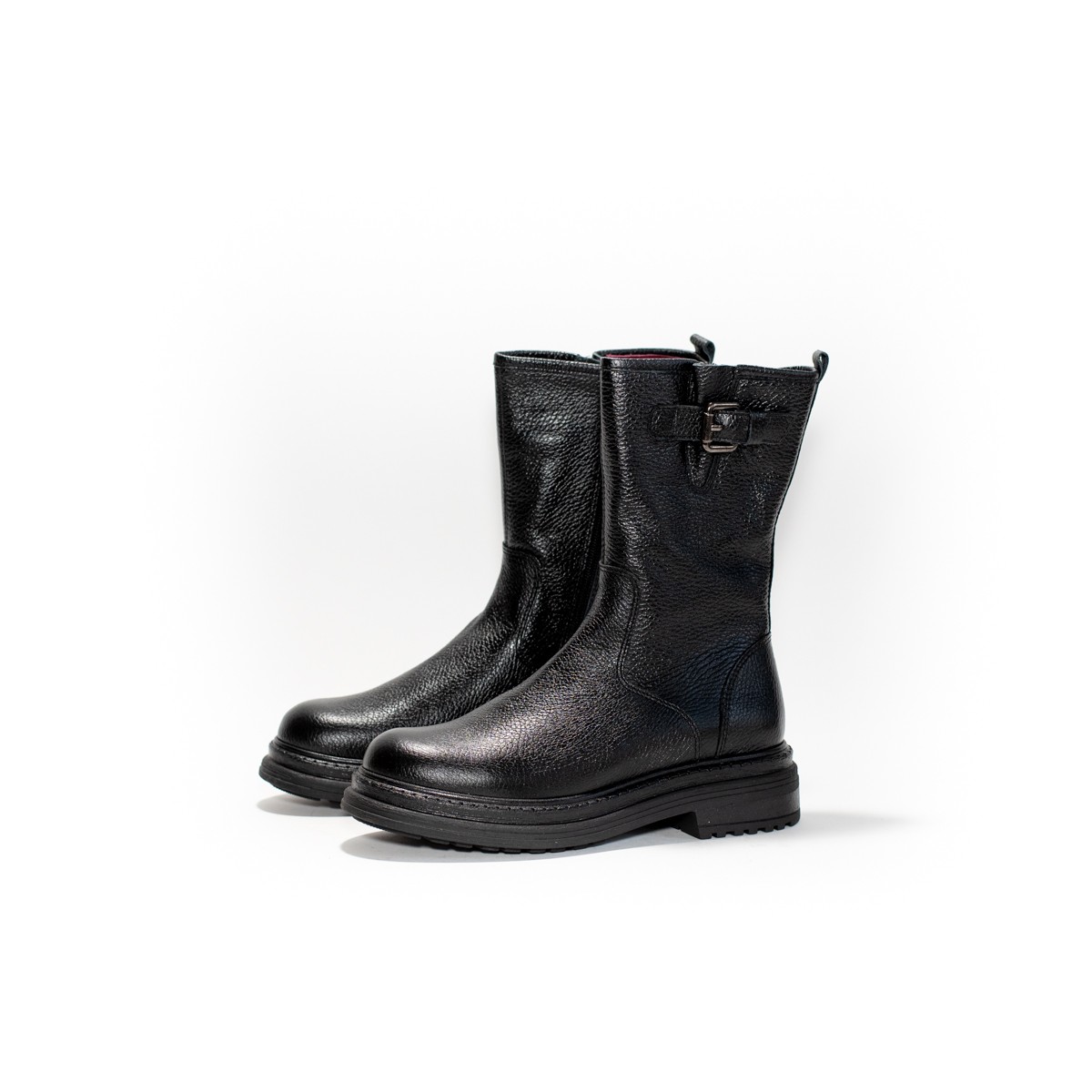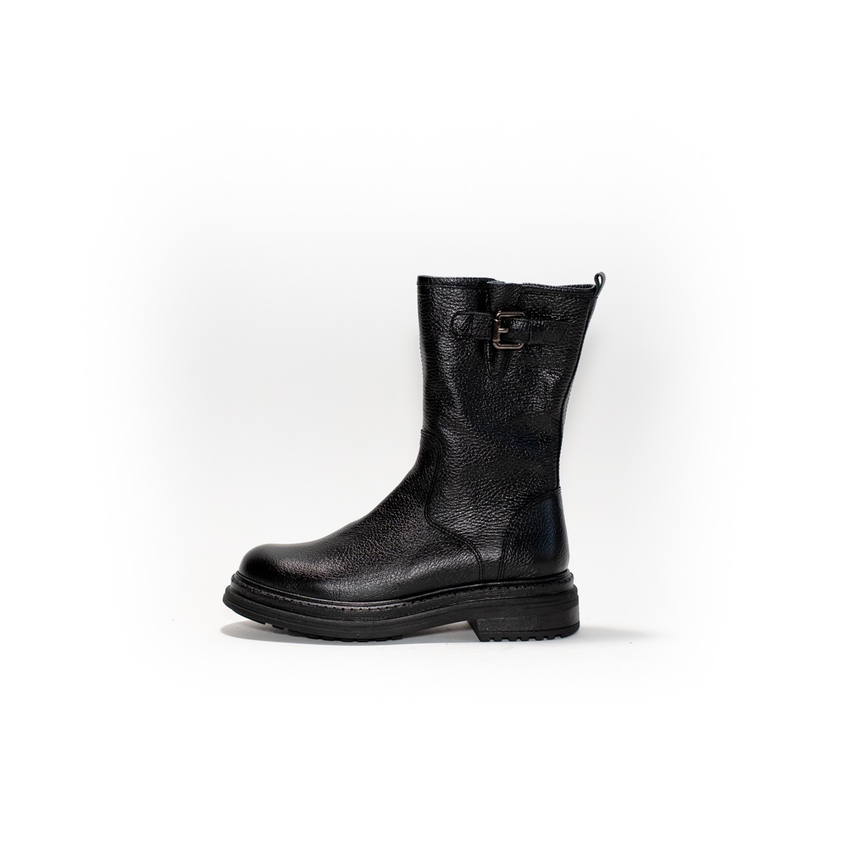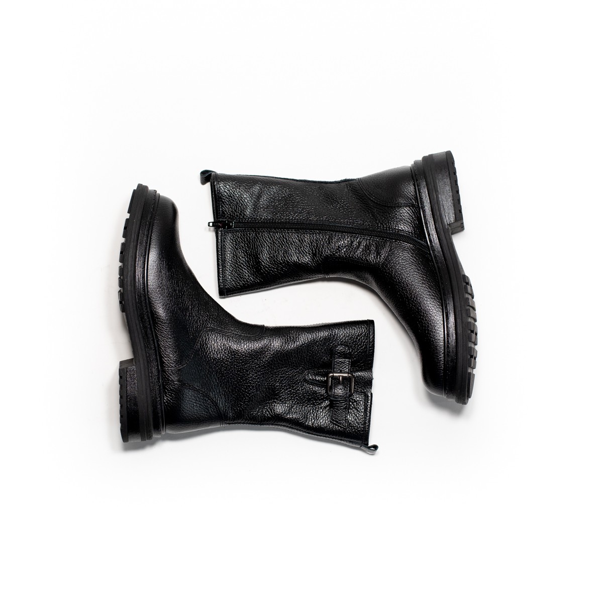 La boots style motard de chez Aliwell en cuir grainé noir rendra votre tenue rock