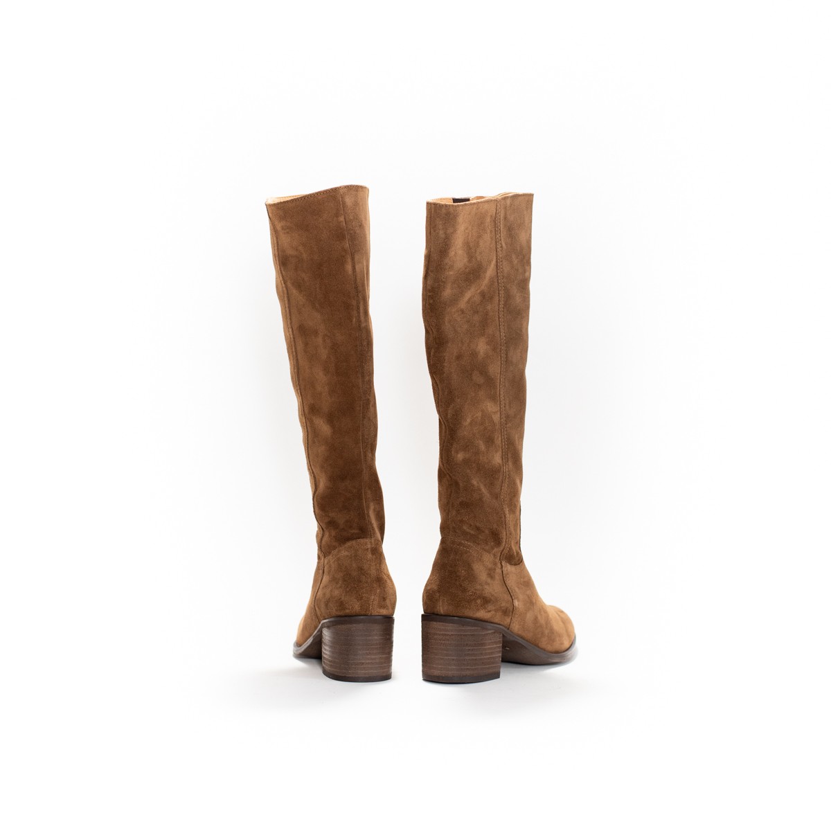 La botte Sygma en nubuck camel est un incontournable de chez Aliwell. Le talon de 4,5cm a la cambrure idéale pour les garder toute la journée aux pieds.